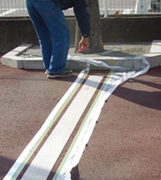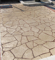 カラーメロウコートとは カラーメロウコートは、特殊配合樹脂と既調合力ラーモルタルを組み合わせたポリマーカラーモルタルです。 特殊配合樹脂の優れた強靭性や接着性と、力ラーセメン卜が持つ質感や色を高い次元で融合させたハイブリッドな施工方法です。床・舗装材として既存コンクリ一卜・モルタル下地やアスフアルトコンクリ一卜舗装下地に使用可能です。また従来では困難といわれていたカラーコンクり一卜下地や磁器タイル下地. FRP下地など、幅広い施工下地に施工が可能です。 特徴 新設でも使い古された下地でも施工が可能です。 コンクりー卜・モルタルはもちろん、アスフアルトやタイルに金属、FRP芯ど幅広い施工面に対して抜群の接着性能。耐薬品性能・耐候性・耐摩耗性も抜群!駐車場にも安心してお使いいただけます。 豊富で自在なデザイン表現が可能。オリジナリティ溢れる表現が可能。 ハードナーを混ぜ合わせることで様々芯カラーパリ工ーションが可能!マスキングテープや型紙と組み合わせて高級仕様も簡単に施工可能! 極めて強靭な物性と、優れた耐摩耗性をほこり、長期に渡り美しさを維持します。 水分・油分がある下地でもプライマーなしで接着します。 有機溶剤を一切使用しないため、施工場所を限定する必要がありません。 コテ塗・吹き付け(スプレー)共に施工可能です。 壁画にもと使用いただけます。 カラーメロウコートのご利用場 建築関係 一般住宅外構・集合住宅等の工ントランス・各種駐車場・ショッピングセンター・屋上・プールサイド等 景観土木関係 プロムナード・遊歩道・河川海岸等の護岸工事 施工概要 工法の種類 主な特長 レギュラ一工法 ステンシルペーパーと組み合わせ、 デザイン性を高めます。 テープライン工法 マスキングテープで白地を表現することが可能です。 ベーシック工法 コテ塗・スプレー刀ン等で一回塗布。 単色仕様。 レギュラー工法 テープライン工法 ベーシック工法 工法の種類 プライマー ファーストコート テープ型紙 セカンドコート トップコート レギュラ一工法 × ▼ ○ ○ △ テープライン工法 × ▼ ○ ○ △ ベーシック工法 × ○ × × △ ×:不要 ○:必要 ▼:好みで選 △:耐久性向上のためには推奨 レギュラー工法・テープライン工法 目地となる部分を型紙やテープでマスキングを行う工法です。下地面に直接貼り付ければ下地自体が目地となります。目地の色を変えたい場合は、目地となる色で全体をゴテ塗りし、型紙あるいはマスキングテープを貼ってからセ力ンドコートを塗布します。 ベーシック工法 カラーメロウコートの基本となる仕様です。下地処理を行った施工面に一回塗布して終了するもっともシンプルな工法です。 施工の流れ 1.下地処理 施工する下地面を、 健全芯状態 に処理します。 レイタンス等の 脆弱層は、 表面研磨・酸洗い ・ 高圧洗浄 等の状況に合わせてもっとも適切な方法で除去してください。 ホ コリ分は完全に取り 除いて下さい。 その他コンクリー卜 ・モルタルの下地処理に最 適な洗浄剤やアスフアルトの脱 脂剤をご用意しております。 2.養生 次工程に応じて養生を行い ます。テブマスキング、マス力一等を使用します。また、型紙仕様で目地色の変更しない場合は、型紙の設置を行います。 3.力ラーメロウコート材料作成1 カラーメロウコートの材料は「メロウバインダーLE」と専用グラウ卜を混ぜ合わせて作成します。メロウバインダーは、二液硬化型樹脂芯ので主剤と硬化剤の二種類の樹脂の組み合わせと芯ります。 4.力ラーメロウコート材料作2 充分に撹排された材料を施工面 に流し、力ナ鍾等で、均一に塗布します。仕様により「刷毛引き」「櫛引」「力ナ鏝押さえ」等のテクスチャを加えます。 5.テンプレート貼付・マスキングテープ貼付及び養生(※仕様によって省略します) 仕様に応じてペーパーステンシル(型紙)を貼り付けたり、マスキングテープで目地部を覆います。 6.力ラーメロウコート塗布 カラーメロウコートの吹付けを行います。専用のホッパーガンと、コンプレッサーを使用し、均一に吹付けます。 7.養生・マスキング除去 ファーストコート・セカンドコート共に、塗布後四時間は水に濡れ芯いように養生を行います。乾燥前に濡れると、材料が流されたりします。 また白く変色(再乳化)してしまいます。夜露や降雨などの危険性がある場合は、表面が乾燥してからトップコートを塗布してください。マスキングテープや型紙を除去して清掃を行います。 型紙やマスキングテープを取り除いたら目地部に入り 込んだ材料をワイヤーブラシ等で除去してから清掃します。 8.トップコートについて トップコートを塗布すること で、 防汚性や耐久性が向上します。 9.完成 カラーアスファルト一層吹き仕様 パンフレット