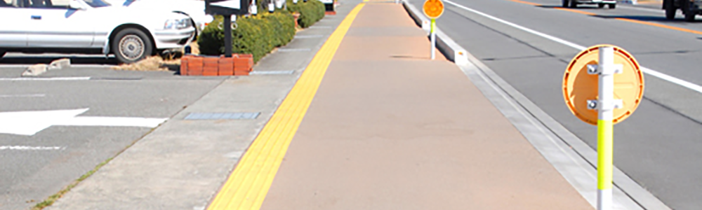 概 要 無色透明な脱色バインダーを使用し、各色の顔料により着色する加熱タイプのカラー合材を、透水性舗装、排水性舗装に利用したものです。 特 徴 透水機能を保持しながら、好みのカラー舗装が選べます。強度は一般舗装と変りません。機械化舗装で大規模舗装が可能です。 利用場所 遊歩道、駐車場、公園、バスレーン